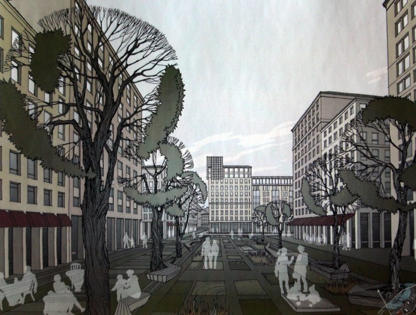 Сегодня была представлена концепция, созданная давними партнерами «Теоремы» ООО «Евгений Герасимов и партнеры» и ООО «Спич» Сергея Чобана. Евгений Герасимов рассказал о двух важных, по его мнению, моментах. Во-первых, мастерская предлагает сохранить не только памятники, но и дореволюционные краснокирпичные здания, не числящиеся памятниками. Также «мы всеми усилиями пытаемся» уменьшить высотность, то есть она будет меньше, чем установлена правилами землепользования и застройки, а именно около десяти этажей.