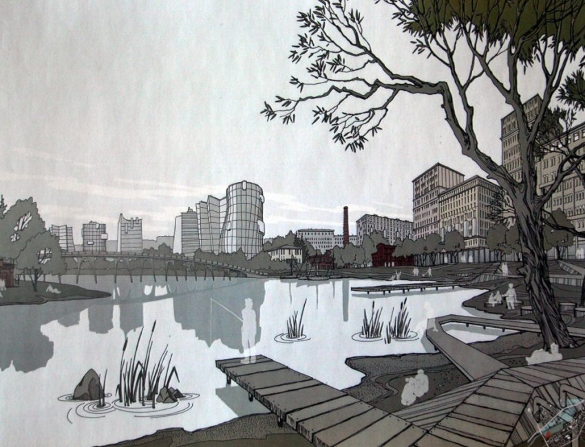 Территорию завода «Пластполимер» на улице Коммуны застроят жилыми кварталами. Они расположатся на обоих берегах Охтинского разлива и будут представлены относительно невысокими домами.