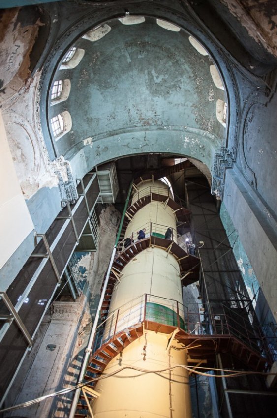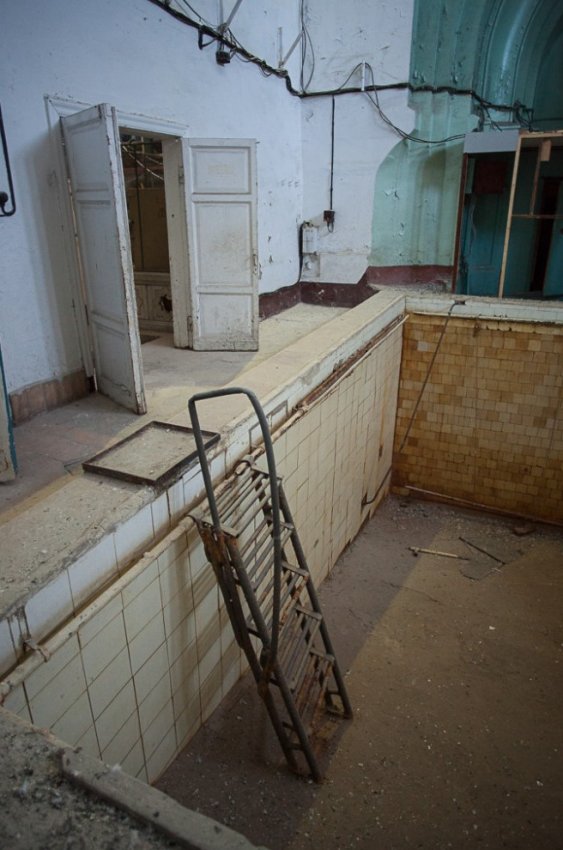 Шефство над храмом-бассейном взял фонд «Северная столица». Пару лет назад там рассказали нашему изданию, что реконструировать здание с возвращением ему культового облика предполагается до конца 2015 года. В первую очередь обещали демонтировать барокамеры, отмечая, что это самый сложный этап работ.