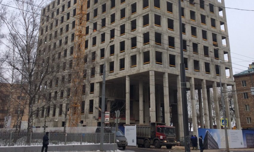 Объект на Пресненском валу нам удалось посмотреть только со стороны: он виден относительно издалека на фоне малоэтажной застройки микрорайона.