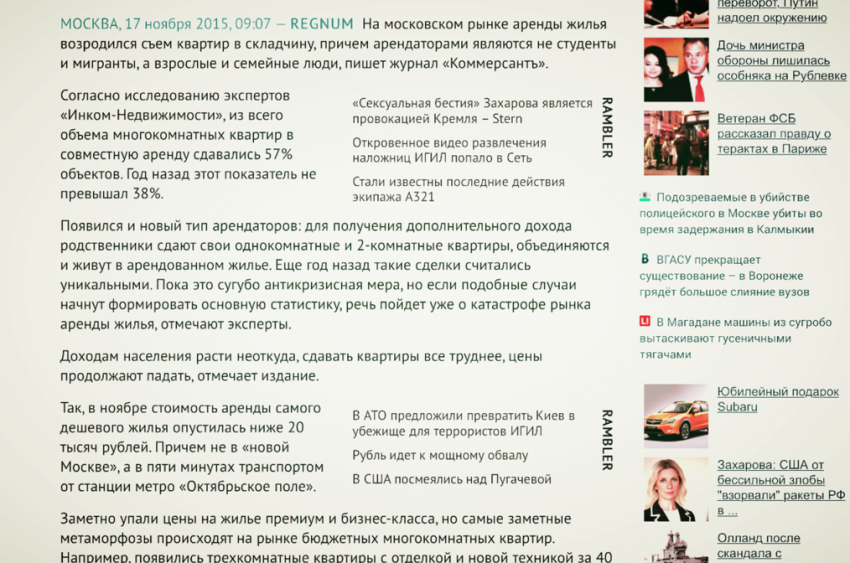 Москвичи возвращаются к давно забытому стилю "коммуналки", в моду входит съем жилья в складчину. И это не студенты и мигранты, а взрослые и семейные люди. "...если подобные случаи начнут формировать основную статистику, речь пойдёт уже о катастрофе рынка аренды жилья, отмечают эксперты " А тем