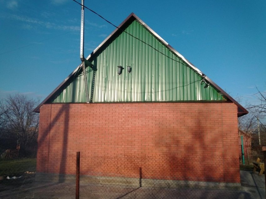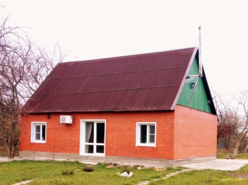 Крышу удлинили, промежутки межу стропилами заложили бракованным кирпичом.