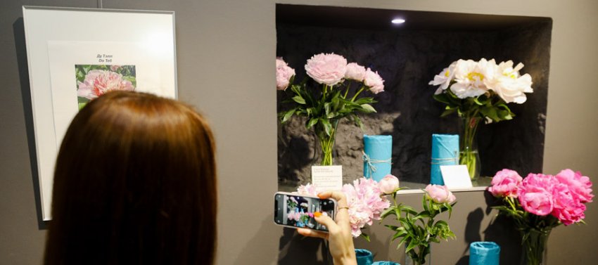 — Поток посетителей очень большой. Особенно много тех, кто интересуется цветоводством. Конечно, привлекает минчан и необычайная красота, и запах. Он, к сожалению, не передается фотографиями или текстом, — улыбаются в галерее. — В Минске есть сообщество любителей пионов, где люди обмениваются опытом, общаются, кто-то селекционирует, делится своими достижениями. Поскольку общение происходит только в интернете и фото не передают полноту красоты цветов, решили объединиться и провести такую выставку. После уже решили дополнить пионы искусством — получился вот такой проект.