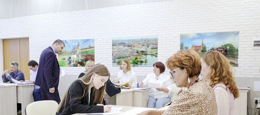 В холле Белорусского государственного педагогического университета имени М. Танка многолюдно: вначале у ребят проверяют правильность заполнения документов, а затем молодежь расходится по приемным комиссиям выбранных факультетов. Но такая простая схема сегодня работает не у всех. Есть особенная категория абитуриентов, которые в этот день вынуждены еще и держать испытание. Речь идет о выпускниках педагогических классов, которым, чтобы поступить в вуз, предстоит пройти собеседование. Возле кабинета, где экзаменуют будущих учителей, уже скопилась очередь. В руках у ребят громадные папки – это их портфолио, результат работы на протяжении последних нескольких лет. Они участвовали в конкурсах, разрабатывали авторские уроки, волонтерили. Теперь их первый педагогический опыт проходит серьезную экспертизу – члены комиссии внимательно изучают каждую страничку портфолио. Но и это еще не все. Абитуриенты тянут экзаменационные билеты, в каждом по два вопроса о специфике учительского труда.