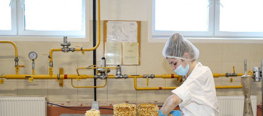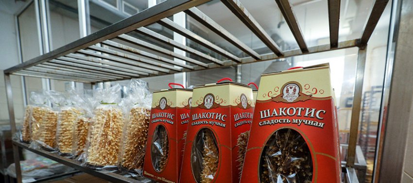 – Здесь потоковое производство, где выпускаются массовые изделия – торты как классических, так и новых разработок. Классические – наш излюбленный «Ленинградский», «Киевский», «Сказка». Из новых у нас представлены творожные торты и уже всем известный «Прага». Мы разрабатываем также новые виды пирожных. Из последних новинок у нас воздушно-сливочное пирожное, оно полюбилось горожанам за последний год и пользуется большой популярностью. Также у нас появился «Шакотис» со сметаной и со сметаной и черносливом. В среднем в день мы производим порядка 2 т тортов и пирожных, – отметила Н. Ляховец.