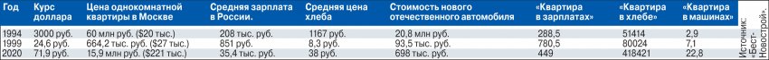 Из-за нескольких волн гиперинфляции в 1990-е годы в России очень сложно перевести цены до 1998 года (после деноминации и дефолта) в современную денежную систему. В середине 1993 года однокомнатная квартира в Москве оценивалась в 15–20 тысяч долларов. Сейчас эта самая квартира стоит более 200 тысяч долларов. Но каких усилий стоили 20 тысяч долларов тогда и 200 тысяч — сейчас?