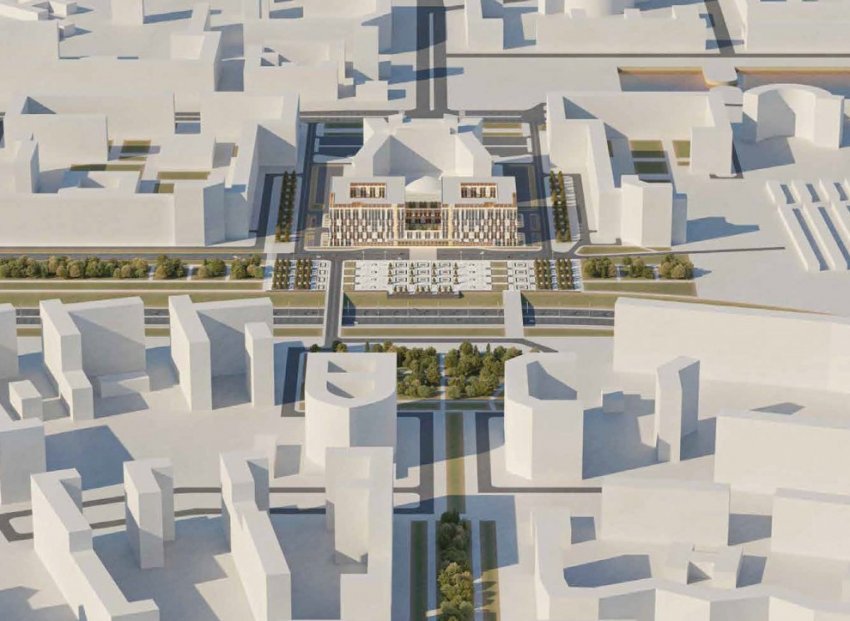 Но оказалось, что вариант «Стройэксперта» не финальный. Сегодня новую работу представили на градсовете. Ее разработало ООО «Архитектурная мастерская Столярчука». Гостиница будет состоять из двух симметричных 12-этажных коробок с почти квадратным двором-колодцем. Между коробками организуют два четырехэтажных перехода. Фасады сделаны в «стиле» хаотизм.