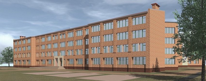 В исполнении ОАО «ЛенНИИпроект» получилась четырехэтажка сложной формы, облицованная красным кирпичом. Некоторые крылья получат треугольное завершение. Учиться тут смогут одновременно 825 человек.