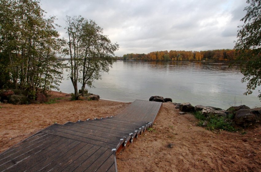 В рамках проекта был благоустроен берег Невы. Там появились «прогулочная дорожка и песчаный спуск к воде, с которого теперь можно любоваться водной гладью реки», уточнили сегодня в Setl Group. Дорожки и площадка сделаны из террасной доски.