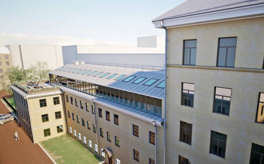 Как стало известно «Канонеру», ООО «Мир» (в лице Александра Малышева) разработало проект надстройки флигеля по заказу АО «Специальный проектно-изыскательский институт». У здания появится четвертый этаж. Внутри разместится гостиница.