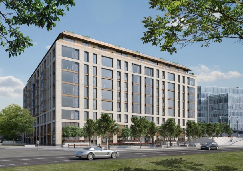 Проект выполнила лондонская фирма Squire & Partners. Должно получиться девятиэтажное здание в форме буквы П. Фасады сделаны в стеклянно-балочной архитектуре.