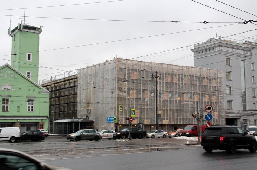 На Московском проспекте рядом с Московскими воротами ведется реконструкция советского здания, в рамках которой его надстраивают. Внутри, судя по всему, оборудуют офисы.