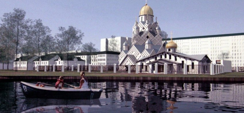 Рядом с Свято-Духовской церковью на берегу Ижорского пруда в Колпине планируется построить еще и собор. Его фасады решено выполнить в клеточку, напоминающую схему планировки квартир.