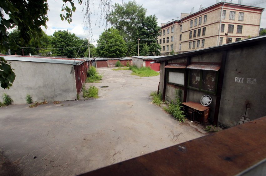 Гаражный комплекс расположен на северо-западном углу Кирочной и Новгородской улиц. По итогам проверки, проведенной комитетом имущественных отношений, был зафиксирован самозахват городской территории.