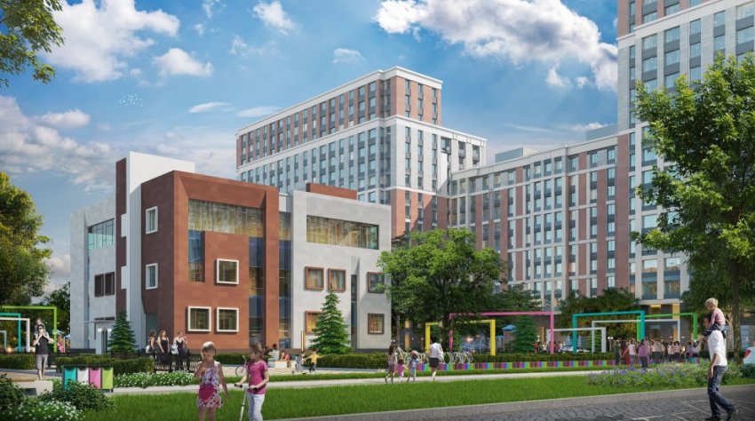 Сегодня было объявлено, что проектом будет заниматься некая BI Group в качестве девелопера, генподрядчика и продавца квартир (MC останется собственником земли и застройщиком). Впервые представили картинки. Жилой дом будет состоять из 11-этажных объемов вдоль Парфеновской улицы и курдонеров между ними, замкнутых 17-этажными коробками. Стилистически объект похож на жилое здание на Новосмоленской набережной, 1, построенное в 1985–1986 годах. Внутриквартальный детский сад на 95 мест сделан 3-этажным, а его фасады представляют собой игру геометрическими фигурами (проект делало ООО «Век», связанное с ООО «Научно-проектная фирма „Ретро“»).