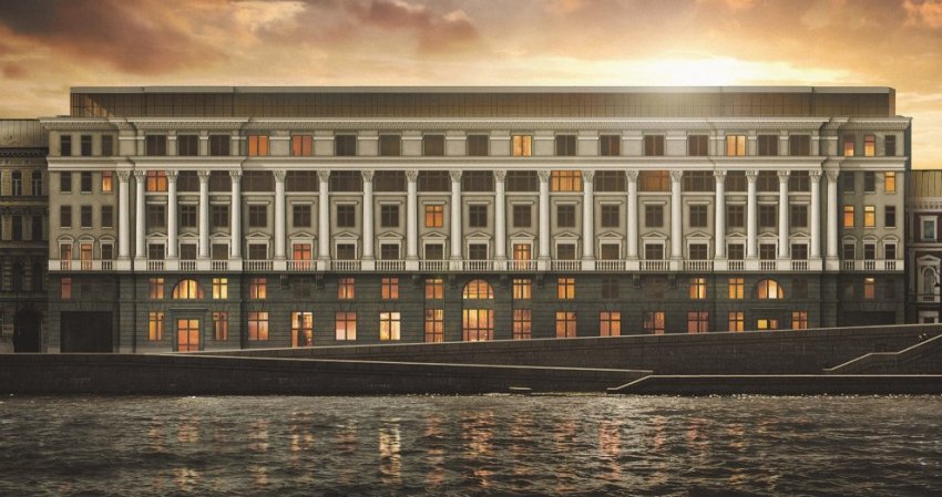 Проект, как и в первых двух случаях, был заказан Евгению Подгорнову из ООО «Интерколумниум», и тот разработал сталинский фасад. На сайте службы строительного надзора утверждается, что «на Воскресенской набережной воссоздадут жилой дом». На самом же деле воссоздание предполагается вольным. Главным акцентом станут полуколонны, а также мощный «аквариум» на крыше.