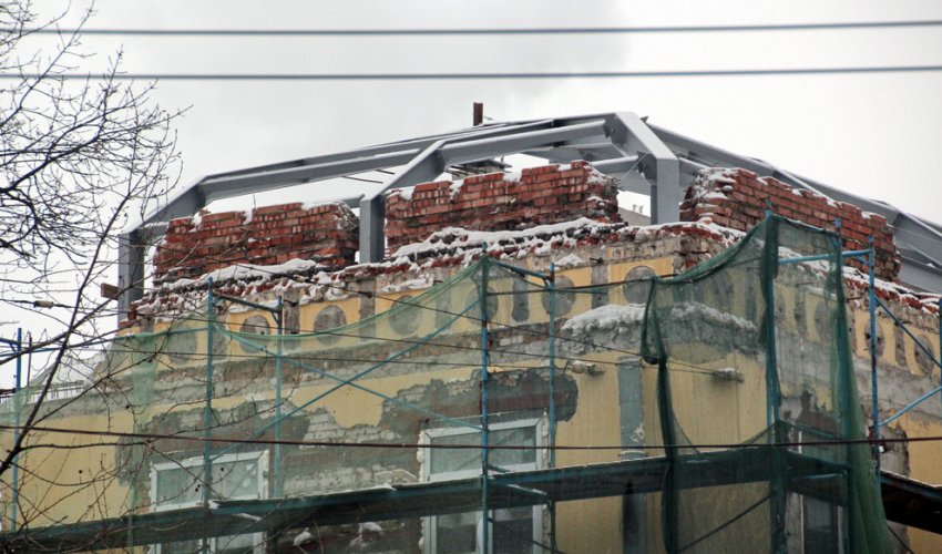 Недавно была снесена крыша здания и частично капитальная стена бокового фасада. Взамен создаются новые конструкции чердака (возможно, мансарды) — их строят из металла. Подрядчиком выступает ООО «Навигатор-СБС». Как сообщили сегодня «Канонеру» в этой компании, завершение работ по реконструкции намечено на март или апрель 2017 года.