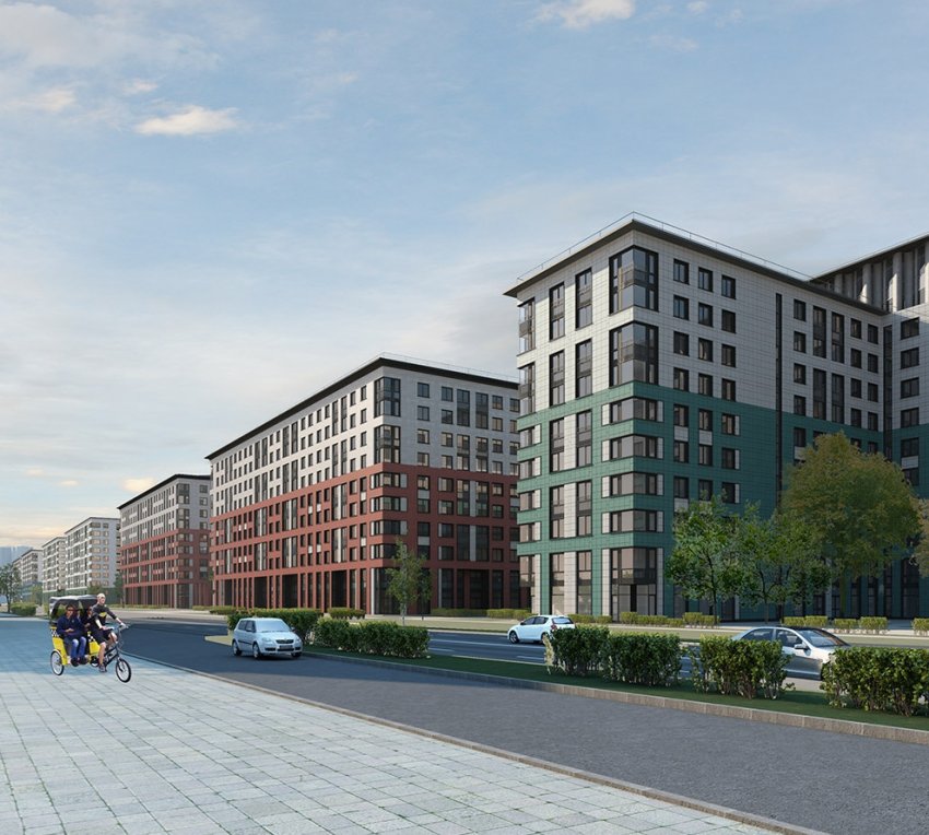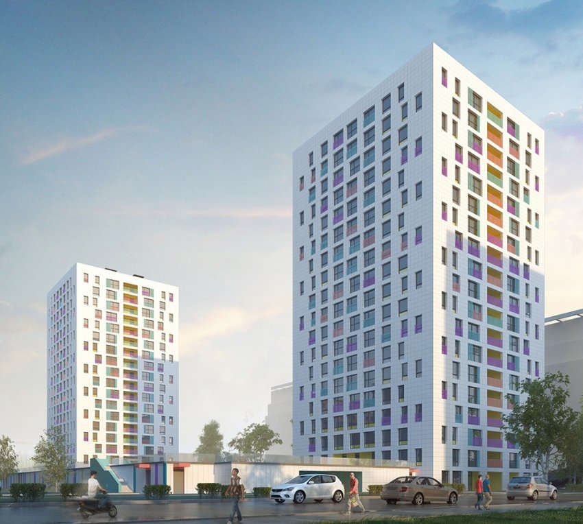 Два первых дома, раскрашенные в бело-красные цвета, предполагается ввести в эксплуатацию в первой половине 2019 года.