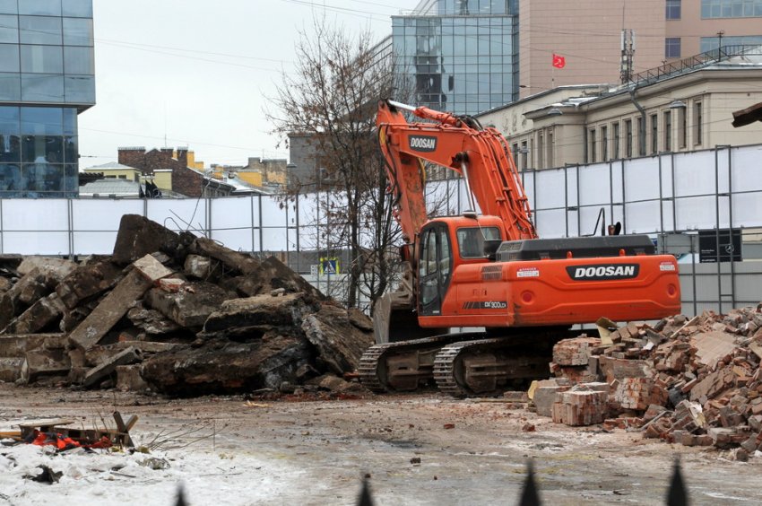 В конце февраля начался снос двухэтажки Спецтранса. Работы выполняет один экскаватор, взятый в лизинг. Подрядчик — недавно созданное ООО «Севзапстрой», записанное на Андрея Антошкива. К настоящему моменту остался только сегмент вдоль проспекта Бакунина.