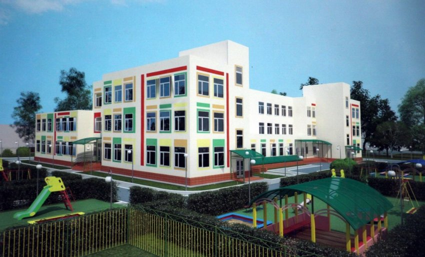Проект детского сада на 200 воспитанников выполнил генподрядчик. Это трехэтажная коробка, раскрашенная в яркие цвета. Сдать объект нужно осенью 2016 года.