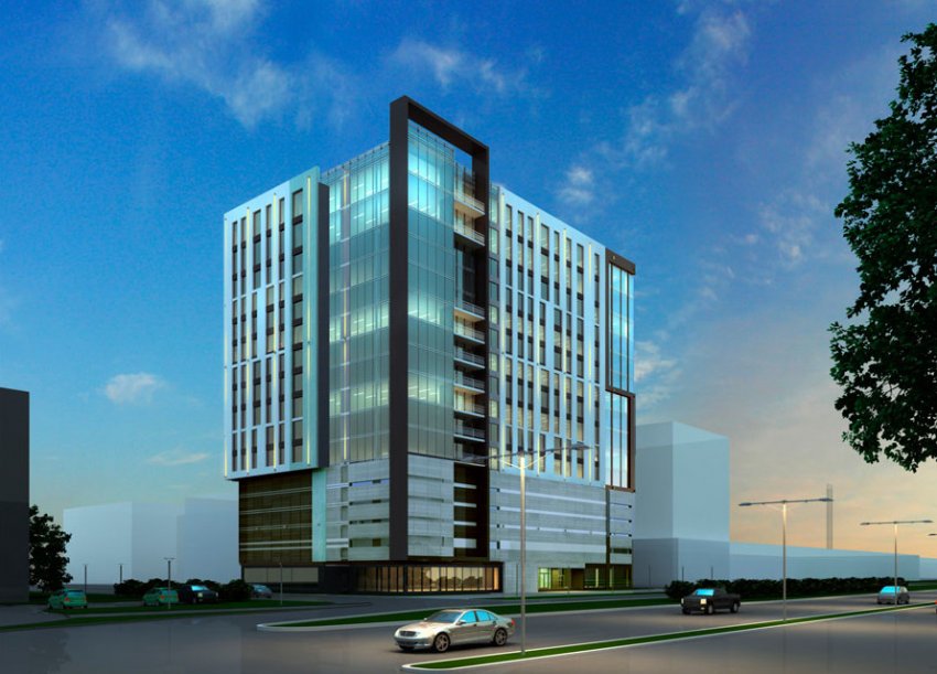 Разрешение на строительство выдано в апреле 2013 года. Сейчас возводится коробка здания. Завершение строительства намечено на первый квартал 2016-го. «Полис групп» сейчас пытается продать строящееся здание, не дожидаясь окончания работ.