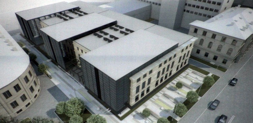 Тем временем Минобороны представило проект кафедры физической подготовки, как официально будет называться спорткомплекс. Это трехэтажное здание с четырехэтажными стеклянными вставками с северной стороны. Арки-перехода, соединявшей недострой с соседним историческим зданием, не предполагается. Новый объект будет на 20 метров отступать от красной линии улицы Академика Лебедева; на этом месте организуют автостоянку.