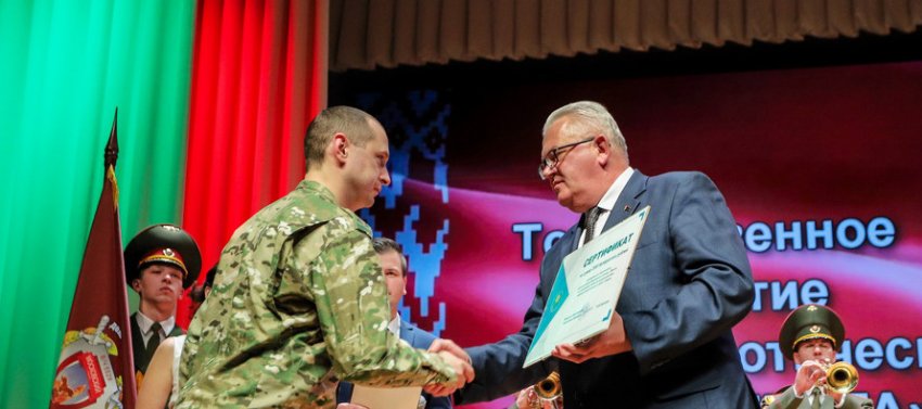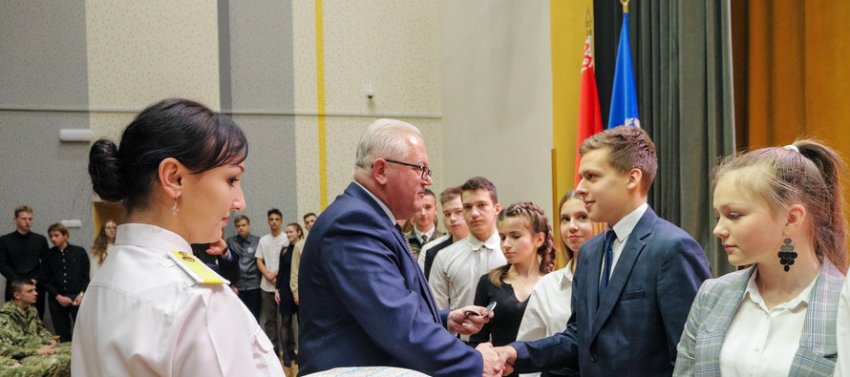 Владислав Василевский учится в 10-м классе СШ № 206. На мероприятие пришел вместе с одноклассниками в пограничной форме.