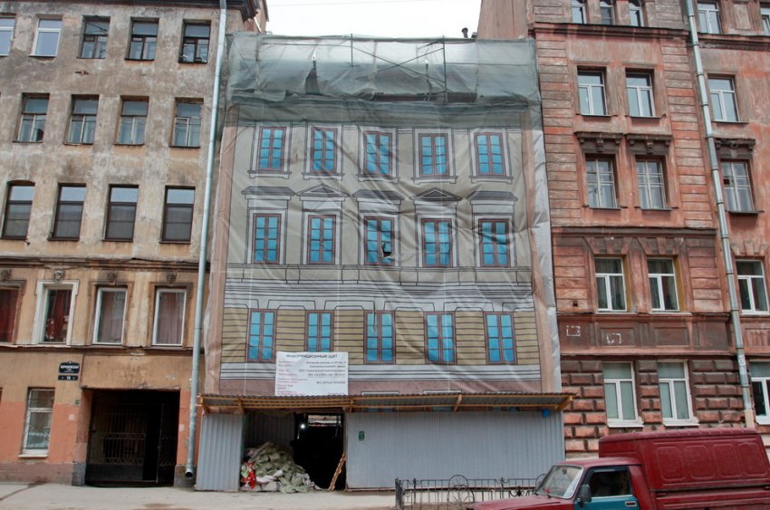 На Воронежской улице капитально ремонтируют расселенный жилой дом. До начала работ он не имел фасадного убранства, но его обещают сделать. Дом Елизарова числится по Лиговскому проспекту, 141, литера Л, хотя выходит только на Воронежскую улицу. Он был построен в 1897 году по проекту архитектора