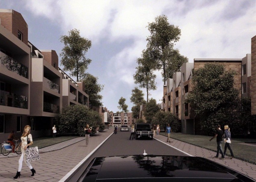 Все жилые дома будут четырехэтажными. В общей сложности их ожидается 27 штук. Для отличия одного квартала от другого применят разные цветовые и отделочные решения фасадов. Открытые автостоянки решено разместить централизованно вдали от крайних корпусов, а именно вдоль железной дороги.