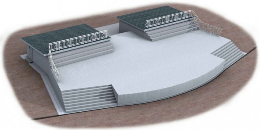 В придачу к сцене изготовят съемную крышу (ее можно будет монтировать в непогоду; постоянный навес исказил бы облик парка) и приставной пандус для инвалидов.