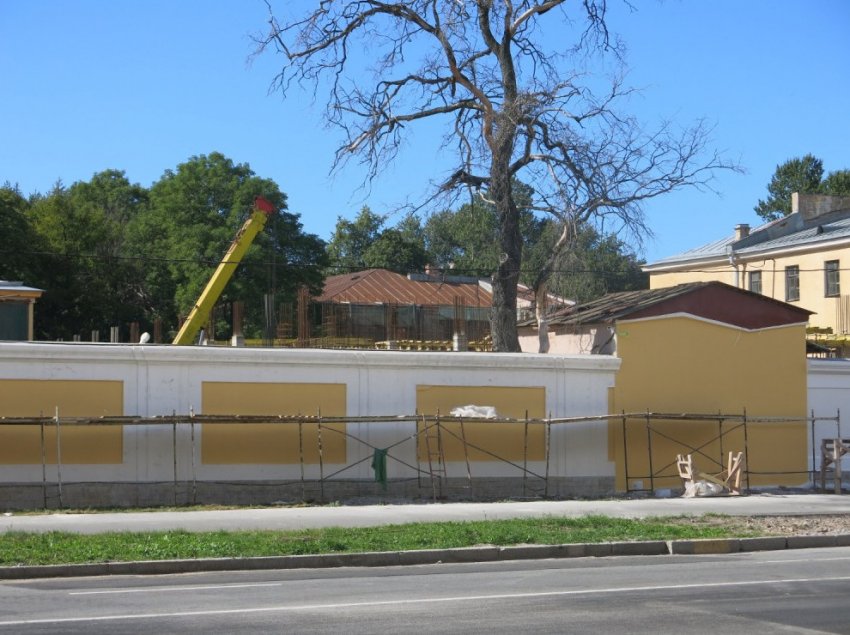 Стена была снесена в марте нынешнего года. Ее демонтировали в рамках реконструкции больницы, которую проводит по заказу ОАО «Главное управление обустройства войск» для нужд Военно-медицинской академии генподрядчик ООО «Инженерное бюро „Хоссер“».