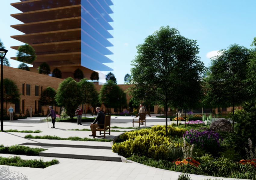Еще одна тема проекта – вовлечение в активную жизнь пожилых жителей – они могут быть волонтерами, помогать молодым семьям в уходе за ребенком, работать на грядках у себя в палисаднике (благо, что первые этажи этому способствуют).
