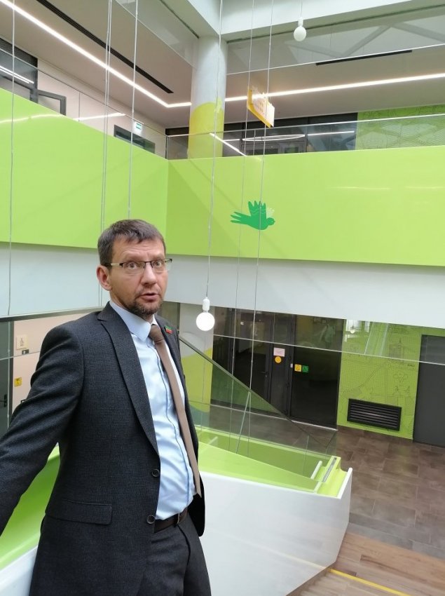 - ...Нашим бюро, совместно с учительским коллективом, были разработаны фирменный стиль, идеология, философия школы, - рассказывает Анна Хакимова. - И, отталкиваясь от них, мы заложили в проект определенные цветовые решения. Если вы обратили внимание, «шаги» зеленого здесь повсюду.
