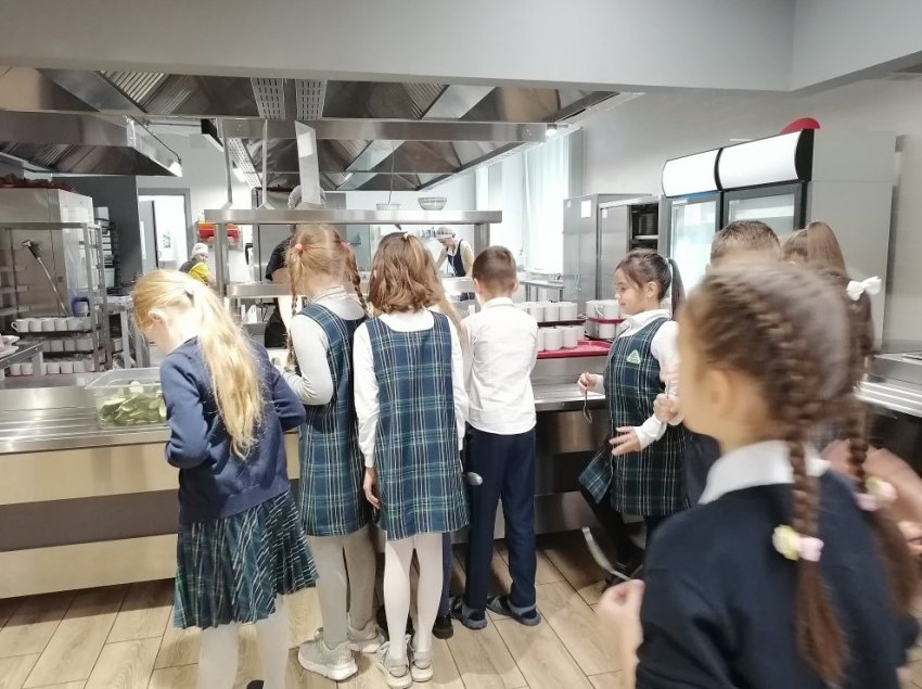 -...У нас 8 жарочных шкафов, таким образом, каждый может попробовать приготовить что-то свое, - поясняет директор. - Каждая команда готовит по технологической карте. Причем девочки и мальчики готовят вместе...Мы тут как-то снимали видео, как младшие школьники готовили, дурачились – получился очень веселый и смешной сюжет.