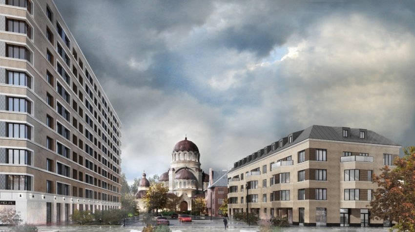 Мастерская представила на своем сайте проект комплекса. Он дает представление о том, что десятиэтажки станут фоном церкви и будут ненамного ниже ее. Дом священника на картинках выглядит отремонтированным, рядом с ним нарисована новая четырехэтажка.