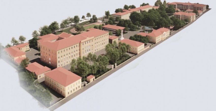 Если вопрос с перебазированием решится, в здании училища расположится факультет церковных искусств. А вот судьба пятиэтажки психдиспансера обсуждается. Рассматриваются три варианта: ее сохранят, но изменят фасады; ее заменят новым двухэтажным зданием в стилистике окружающих исторических построек; ее снесут для восстановления исторической части сада.