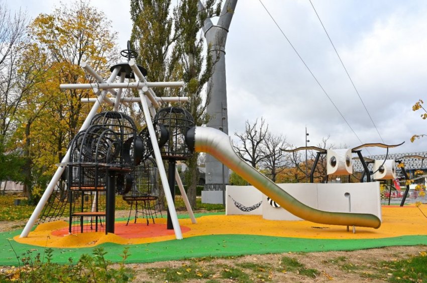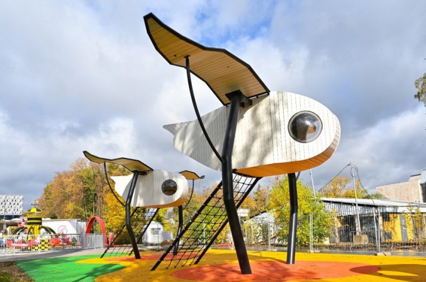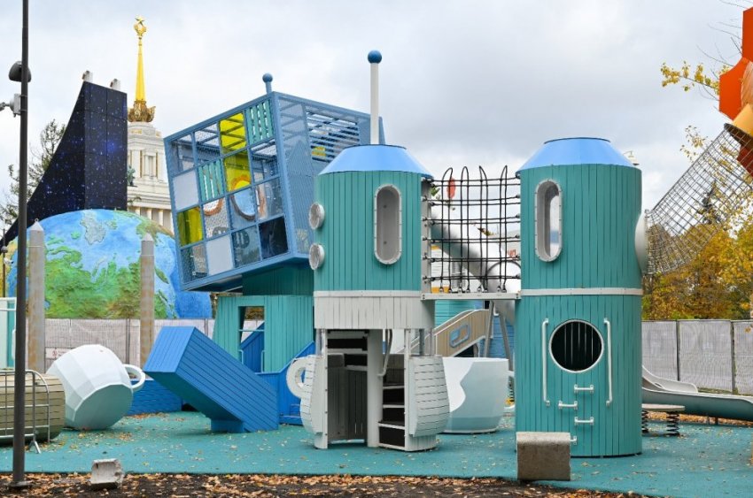 Напомним, что "Робостанция" и “Птицы” - это не первые детские игровые площадки «Новых Горизонтов» на ВДНХ. Ранее здесь был установлен знаменитый серийный комплекс «Стройка».