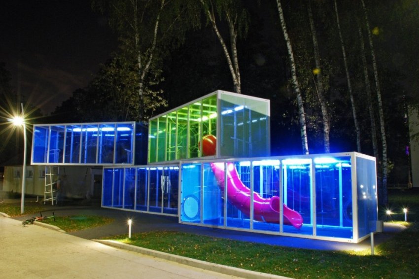 Площадка придумана, запроектирована и введена в строй компанией “Новые горизонты”, которая специализируется на разработке дизайнерских игровых пространств по индивидуальным проектам.