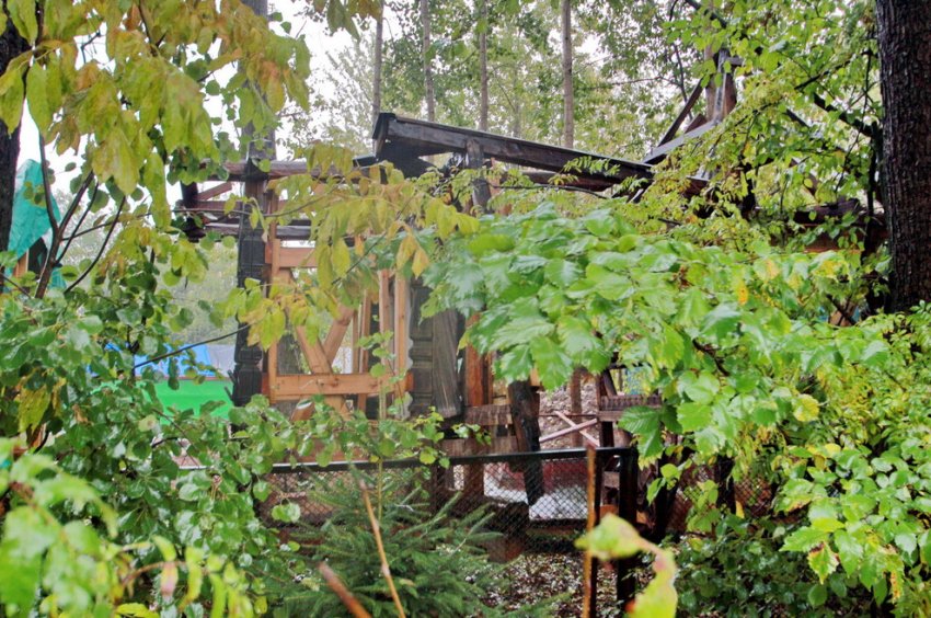 Заказчиком «приспособления» выступает не ВООПИиК, а Минкульт. Как заметил на днях корреспондент «Канонера», в настоящее время дача разобрана. Часть здания — предположительно балкон второго этажа — перенесен ближе к улице Чкалова под открытое небо: в момент съемки его активно поливал дождь.