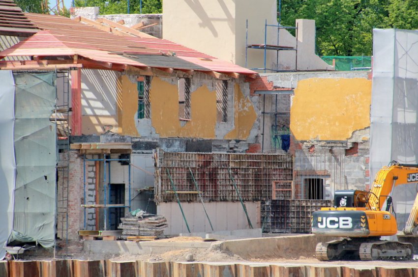 Как заметил корреспондент «Канонера», здание-памятник лишилось северо-восточной пристройки, в которой находился один из эллингов. Также полностью оказалась демонтирована кровля, в том числе на башенке.