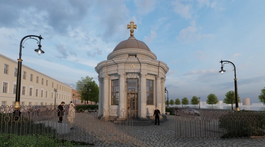 На Синопской набережной ближе к Херсонскому проезду строят временную часовню-ротонду. Службы в ней будут проходить до тех пор, пока не завершится воссоздание Борисоглебской церкви.