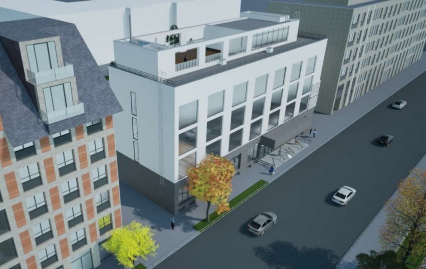 Бывшее здание завода «Алмаз» на Петровском проспекте, 26, литера Д, перестраивают под офисы. Судя по картинке, оно должно подрасти.