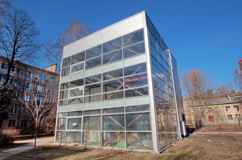 Стекляшку «спортивного клуба» построили во дворах на Краснодонской улице. Она заняла место дореволюционного флигеля, от которого после сноса оставались разрушенные фундаменты на лужайке.