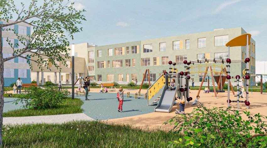 «Проектируемый корпус рассчитан на 400 мест и предназначен для учащихся начальных классов... Корпус будет связан с существующим зданием школы отапливаемым переходом на уровне второго этажа», — пояснили в КГА.