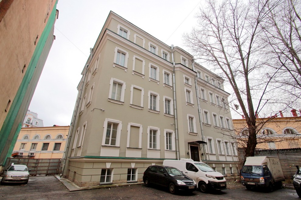 Завершилась реконструкция дореволюционного дворового флигеля на Гончарной улице, 11а, литера Б, под гостиницу. Его надстроили дополнительным этажом.