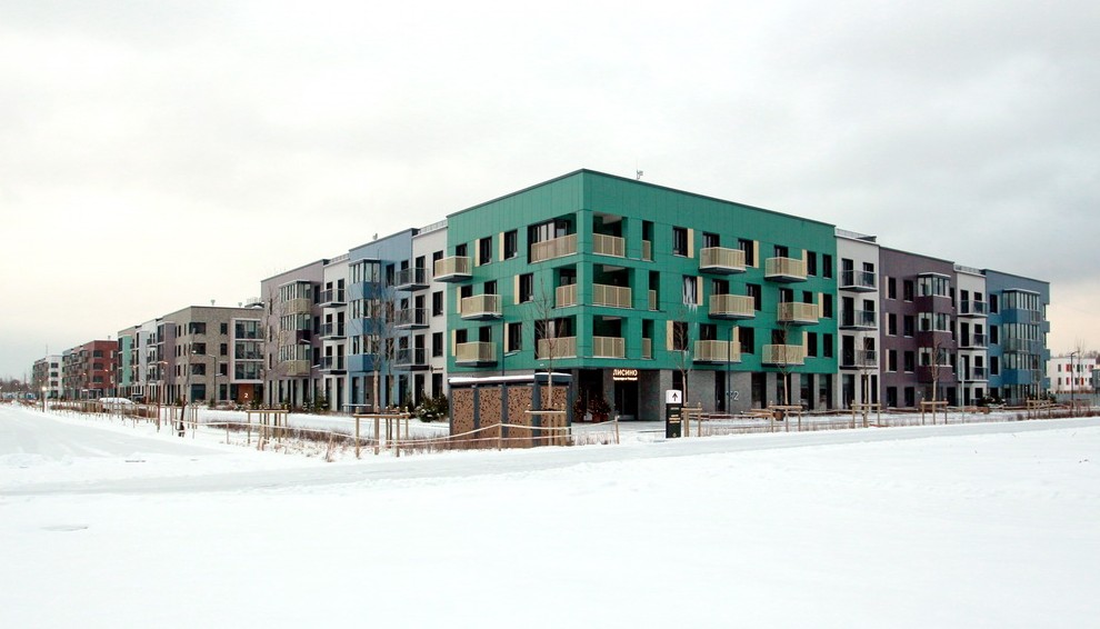 На Авиационной улице в Сестрорецке завершилось строительство первой очереди жилого микрорайона в «стиле» хаотизм. Под него отдали бывший лесопитомник близ аэродрома Горская.