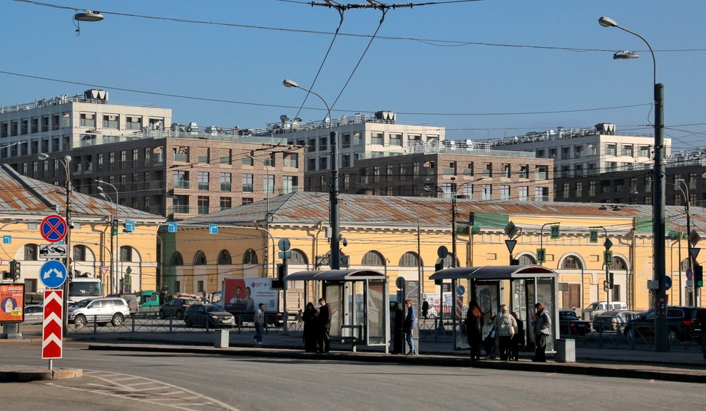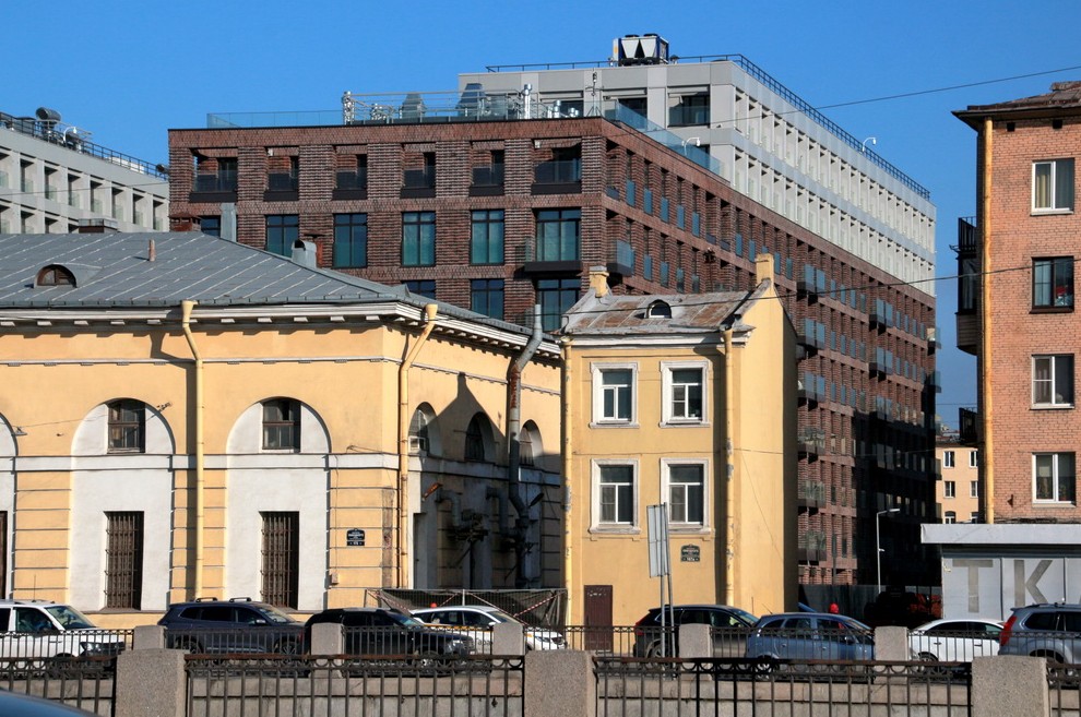 На набережной Обводного канала, 169, достроили надворный жилой дом — торчок. Он, выполненный в «спальной» архитектуре, вылез из-за комплекса федеральных памятников архитектуры — Измайловских провиантских магазинов.