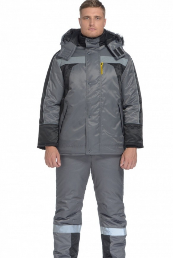 Теплый костюм «Арктика» имеет воротник-стойку и нижний воротник из меха, ветрозащитный клапан, капюшон с козырьком и рукава с ветрозащитными трикотажными манжетами. Это модель для работы в экстремальных условиях при температуре до -41 °С.