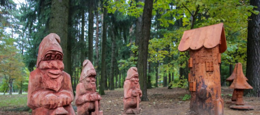 — В этом лесном массиве много птиц и белок, для них обустроили кормушки, для пернатых также смастерили скворечники. Украсили зону деревянными грибками, поставили скамьи и урны, скамейку с крышей, визуально напоминающую домик. Наши работники изготовили это все самостоятельно. Также установили детский игровой комплекс, обустроили зону для детей. Ребята из «Минского государственного профессионально-технического колледжа строителей имени В. Г. Каменского» вырезали из дерева трех гномов и домик для них. Таким образом зеленая зона стала «Домом для всех» — птиц, белок, детей и взрослых, а также для деревянных сказочных персонажей, — объясняет А. Проминский.