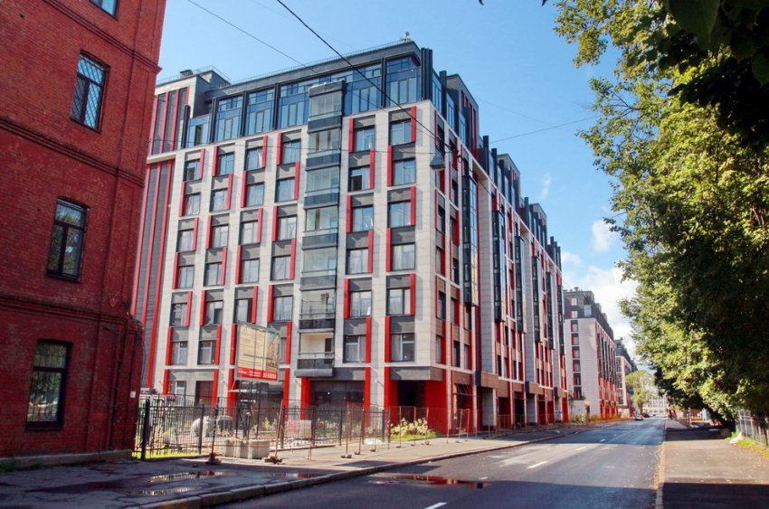 «Дома спроектированы зеркально относительно друг друга и образуют уютные полузамкнутые дворы. Дома отличают строгие линии фасадов, облицованных керамогранитом в молочных и графитовых оттенках с яркими алыми акцентами», — рассказывает застройщик.